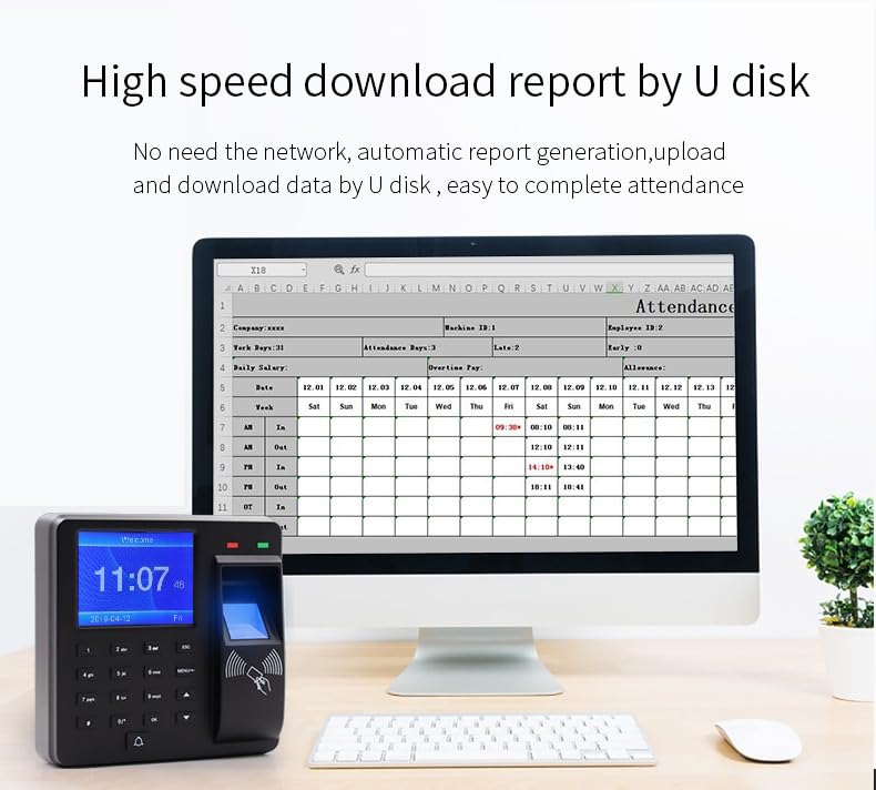 - Clear Display: The large 2.8-inch color TFT display allows for easy viewing of employee details and comprehensive attendance reports.