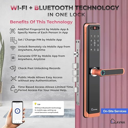 • WiFi + Bluetooth Mobile App: Operate your lock remotely from anywhere via the LAVNA SmartLife app.