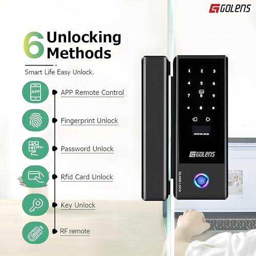 Secure and simplify your life with Golens’ 6-in-1 Smart Glass Door Lock, perfect for home and office use!